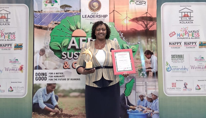 Centre Director for Environment and Service Program, Amb. Margaret C. Kiprono was awarded the Exemplary Leader Award during an award ceremony that took place at Hyatt Regency, Nairobi. This prestigious Award was presented to her by the Eastern Institute for Integrated Learning in Management (EIILM), Kolkata, India.